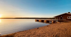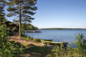 Kiljava Resort’s lakeside sauna is located right on the shore of Sääksjärvi, and there’s a soothing lake view from many of the hotel rooms.